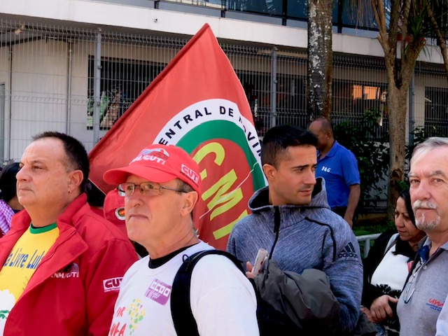 Dans la foulée, la délégation s’est joint à la mobilisation citoyenne organisée par les camarades du syndicat brésilien CUT afin d’exiger la libération de Lula.
