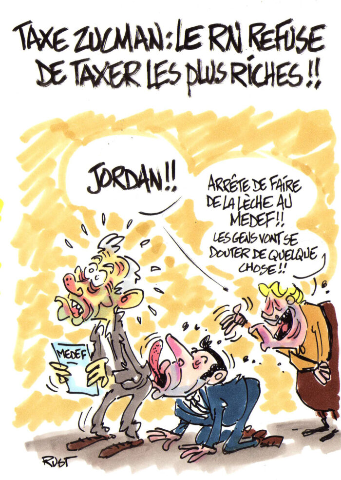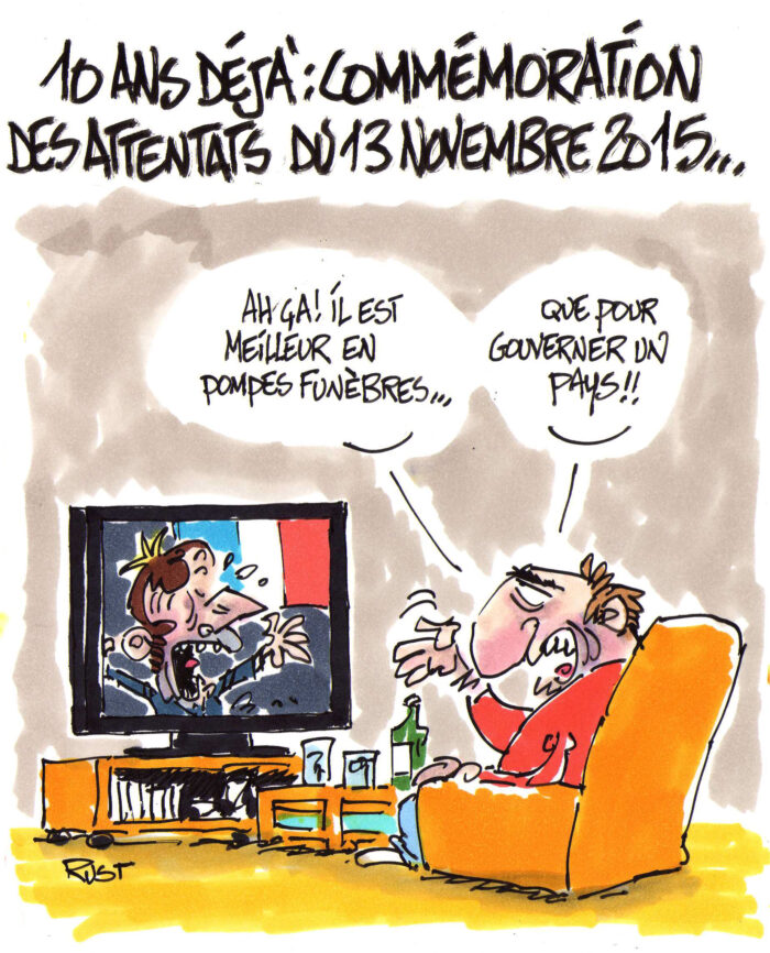 Dessinateur, RUST a rejoint depuis plus de quatre ans le pôle communication de la Filpac. Très prolifique lorsqu’il s’agit d’illustrer l’activité de nos filières et de caricaturer les patrons de nos entreprises, il trouve encore le temps (et l’inspiration !) pour « croquer l’actualité » au fil de son humeur, qu’il a généralement… « mauvaise »… Regard vif, crocs acérés, esprit frondeur et anticonformiste, RUST possède toutes les armes du parfait prédateur de la connerie humaine et de ses pires représentants. Régulièrement, la Filpac vous fera profiter, dans cette page, des meilleurs dessins de sa production hebdomadaire. On aime tous bien les dessins de Rust. Certains d’entre nous, peut-être un peu trop, au point de les reprendre et de les utiliser à tort et à travers. En accord avec l’auteur, la Filpac a donc décidé de limiter l’accès à l’ensemble de ses dessins. Si vous désirez consulter la page des archives de Rust sur ce site envoyez votre demande au secrétariat de la Filpac pour obtenir le mot de passe d’accès à la page des archives Rustiennes. Merci de votre compréhension.