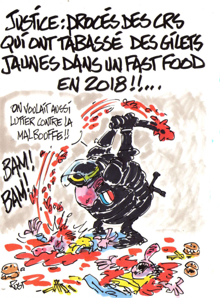 Dessinateur, RUST a rejoint depuis plus de quatre ans le pôle communication de la Filpac. Très prolifique lorsqu’il s’agit d’illustrer l’activité de nos filières et de caricaturer les patrons de nos entreprises, il trouve encore le temps (et l’inspiration !) pour « croquer l’actualité » au fil de son humeur, qu’il a généralement… « mauvaise »… Regard vif, crocs acérés, esprit frondeur et anticonformiste, RUST possède toutes les armes du parfait prédateur de la connerie humaine et de ses pires représentants. Régulièrement, la Filpac vous fera profiter, dans cette page, des meilleurs dessins de sa production hebdomadaire. On aime tous bien les dessins de Rust. Certains d’entre nous, peut-être un peu trop, au point de les reprendre et de les utiliser à tort et à travers. En accord avec l’auteur, la Filpac a donc décidé de limiter l’accès à l’ensemble de ses dessins. Si vous désirez consulter la page des archives de Rust sur ce site envoyez votre demande au secrétariat de la Filpac pour obtenir le mot de passe d’accès à la page des archives Rustiennes. Merci de votre compréhension.