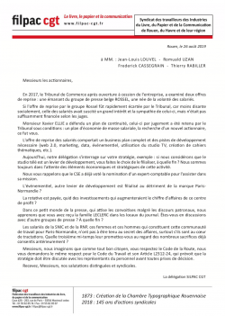 Il aurait pourtant, été aisé à notre actionnaire, d’organiser une conférence de presse. Avec cette stratégie totalement discutable, les salariés se sentent traités comme quantité négligeable et ils ont raison ! En effet, en pièce jointe vous trouverez un courrier du SILPAC CGT adressé aux actionnaires en date du lundi 26 août 2019. Celui-ci est resté sans réponse, à ce jour.