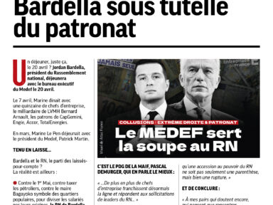 - Contre le 1er Mai, contre taxer les pétroliers, contre le maire Bagayoko symbole des quartiers populaires, pour diviser les salariés par leurs origines, le RN de Bardella paraît pour ce qu’il est, un parti de l’ordre libéral, raciste et antisocial.