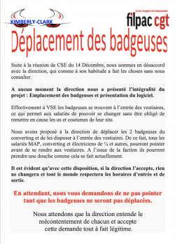 Nous avons proposé à la direction de déplacer les 2 badgeuses du converting et de les disposer à l’entrée des vestiaires. De ce fait, tous les salariés MAP, converting et électriciens de ¼ et autres, pourront pointer avant de se rendre aux vestiaires. A l’issue de la faction ils pourront prendre une douche comme cela se fait actuellement.