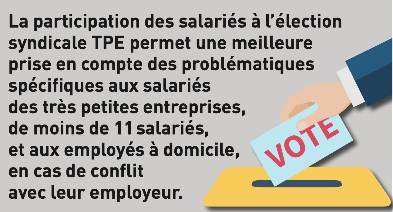 - Parce que plus de 94% des entreprises en France sont des entreprises de moins de 11 salariés qui emploient 5 millions de salariés, cela doit compter. Même si vous n’avez pas de représentant du personnel dans votre entreprise vous pouvez en élire au niveau de votre région qui pourront contribuer à ce que vous soyez représentés, défendus et conseillés par le syndicat de votre