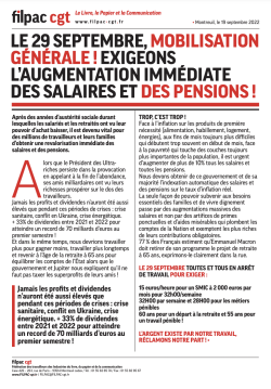 LE 29 SEPTEMBRE, MOBILISATION GÉNÉRALE ! EXIGEONS L’AUGMENTATION IMMÉDIATE DES SALAIRES ET DES PENSIONS !