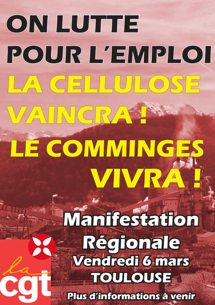 Nous organisons une mobilisation le 6 mars à Toulouse. L’ensemble des salariés du groupe Fibre Excellence est appelé à se mobiliser pour la sauvegarde de nos emplois.