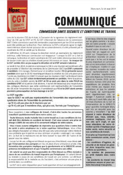 Le lundi 6 mai 2019, le patron a convoqué le CSE à une réunion extraordinaire afin de procéder à l’élection des membres de la Commission SSCT. La CFDT a présenté 3 candidats : Eric Lesage, Florian Sueur et Jonathan Soulier. FO n’a présenté aucun candidat alors que le DS FO revendiquait depuis la création du CSE une place pour l’un de ses membres à la CSSCT. Il croyait que les réunions CSSCT se fondaient dans celles du CSE ! La CGT a bien évidemment présenté un candidat, Rémi Giacalone. Lors du vote à bulletin secret, la CFDT et FO se sont unis dans le vote POUR les candidats CFDT et le patron s’est abstenu. Il aurait été beaucoup plus respectueux des collègues électeurs que cette commission soit représentative de l’ensemble des OS et de l’ensemble des équipes. Il semblerait que FO et la CFDT aient comme première préoccupation de faire barrage à la CGT